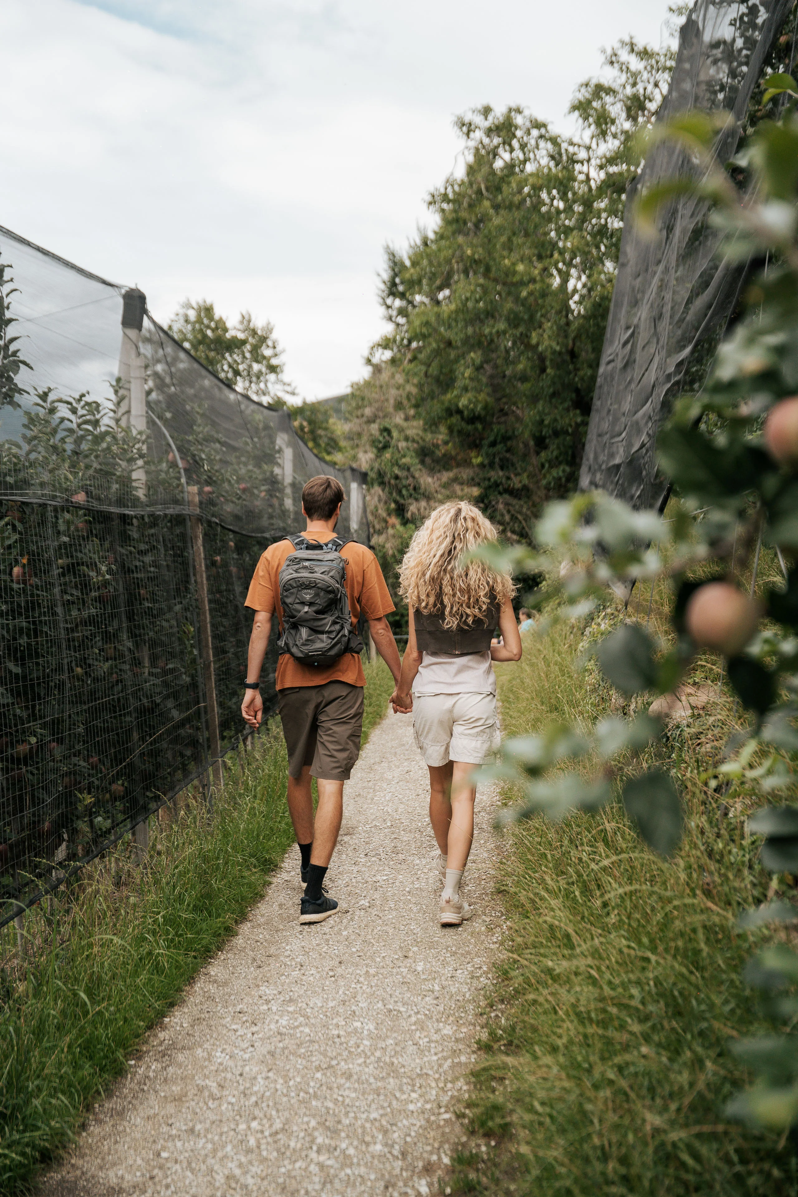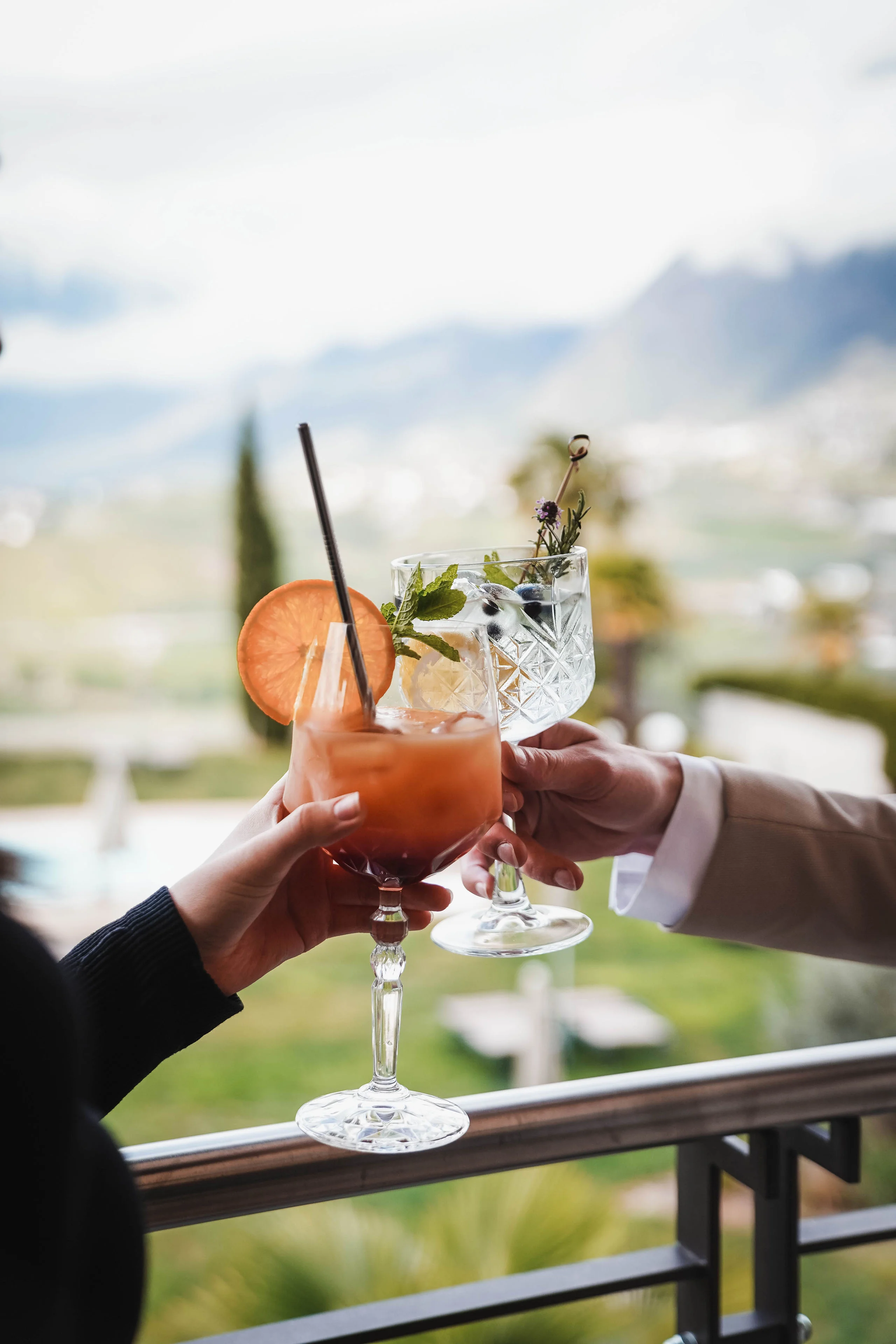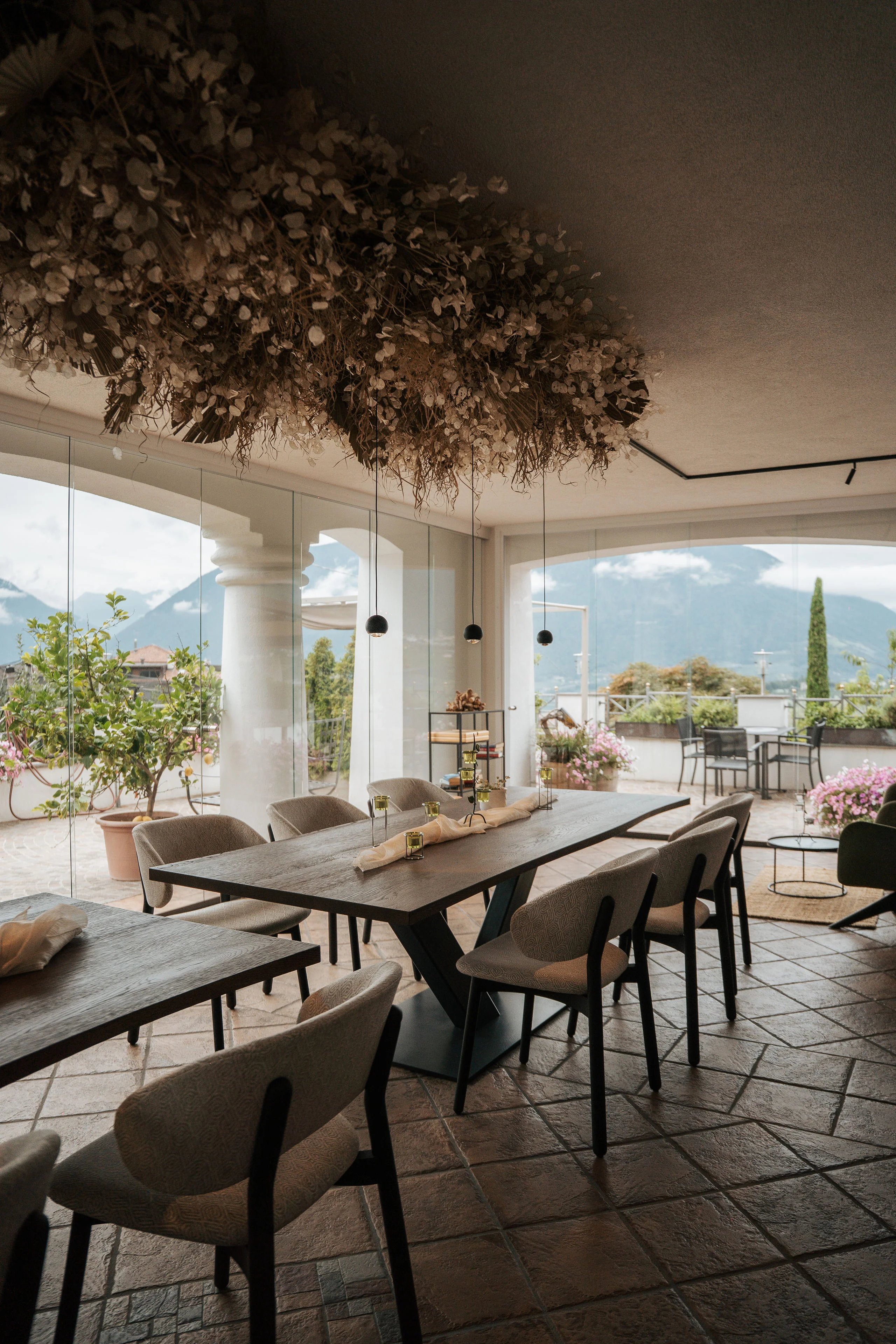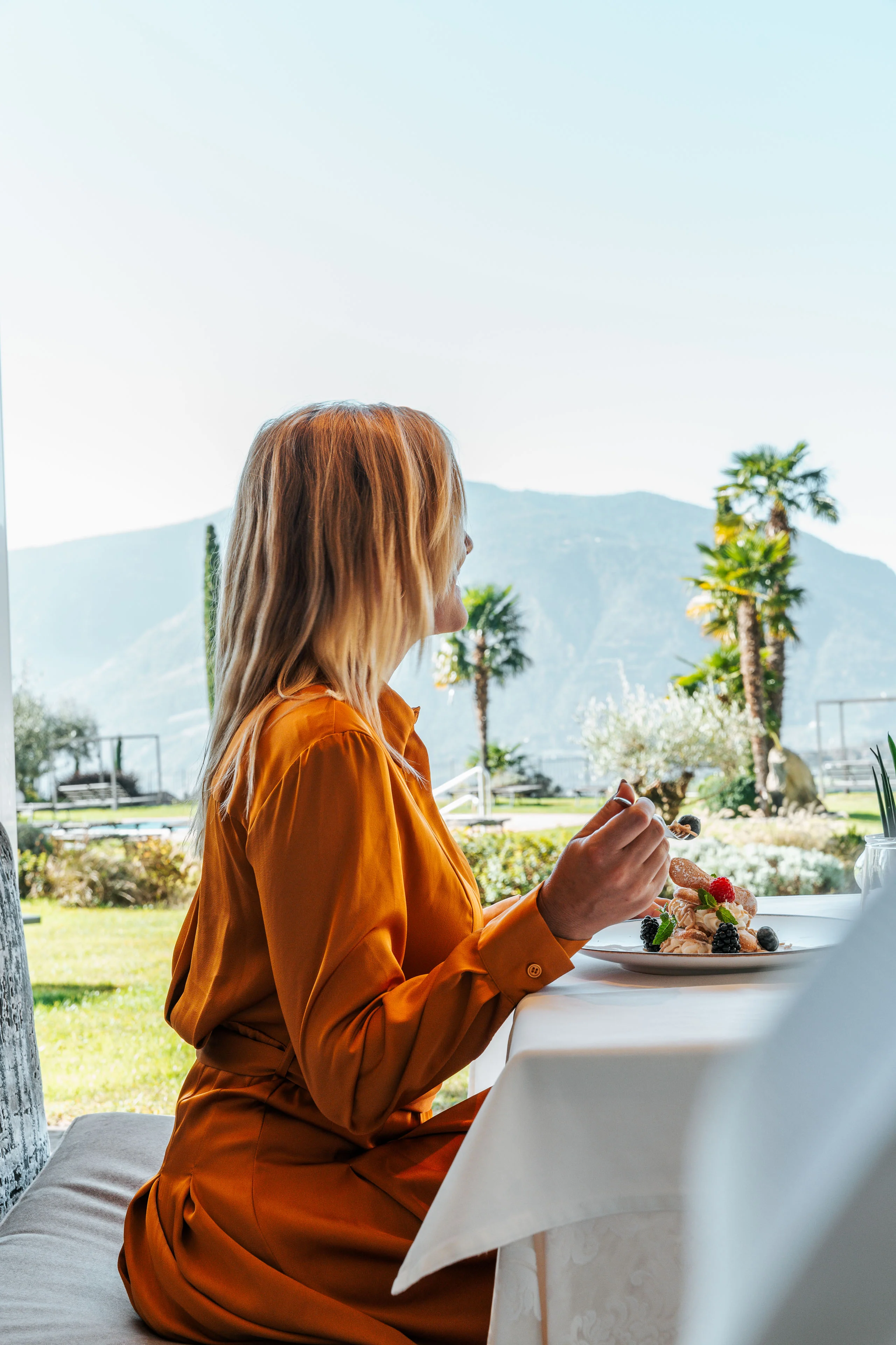 Ihr kommt an und lasst euch erstmal in die gemütlichen Sessel auf der Terrasse sinken. Hach, dieser Blick … Mediterran anmutende Palmen und Olivenbäume, sattgrüne Almwiesen, felsige Bergspitzen. Einfach nur herrlich. Was ihr heute noch so macht? Vielleicht in die Sauna, vielleicht ein entspannter Spaziergang, vielleicht auch einfach Dasitzen im Garten und das Panorama bestaunen. Da habt ihr keinen so genauen Plan. Denn in eurem Hotel in Schenna lebt ihr jeden Augenblick in #echtzeit.