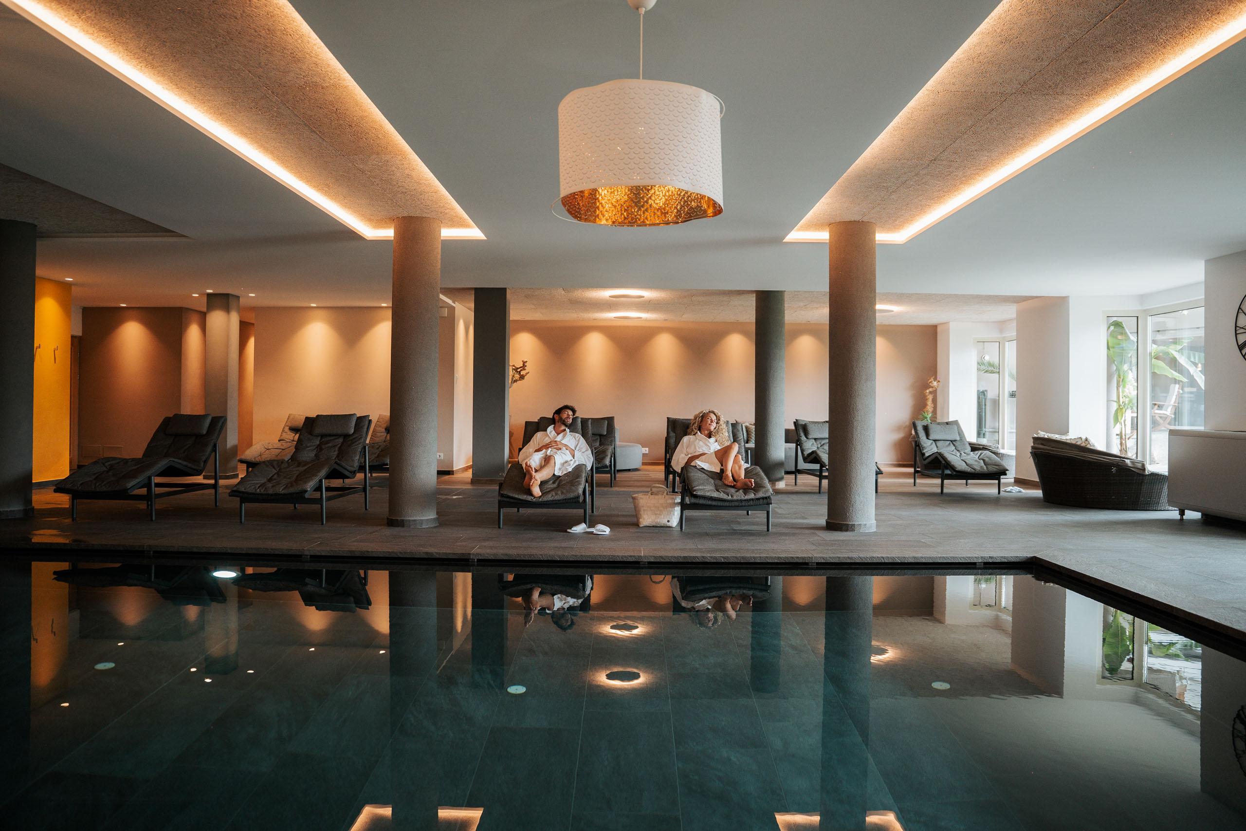 - + Entspannung pur in den Pools, Saunen und Ruheräumen