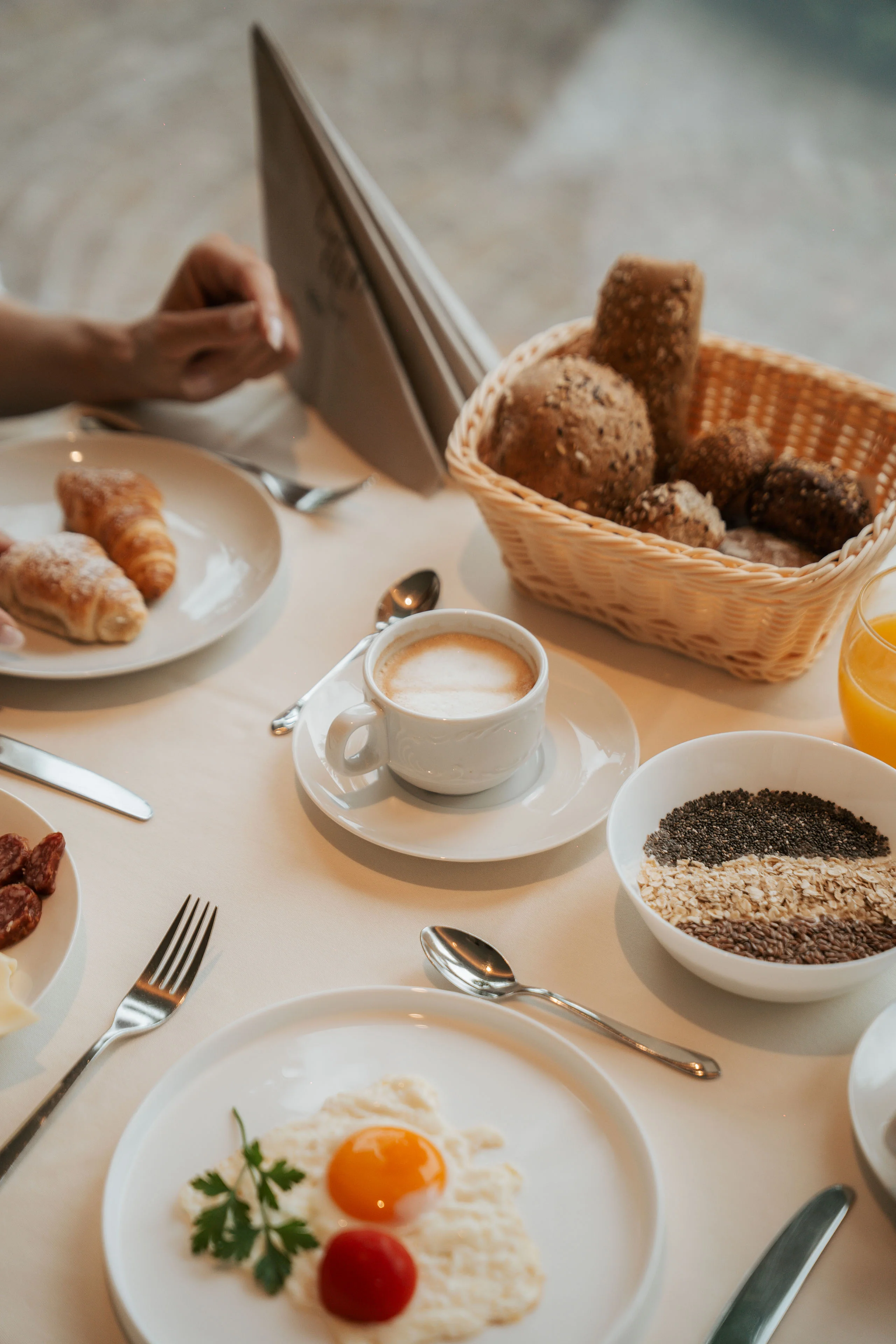 - Gute Urlaubstage beginnen mit einem guten Frühstück: Zwischen 07.30 und 10.00 Uhr füllt ihr eure Kraftreserven am liebevoll angerichteten Buffet mit knusprigem Brot und Gebäck, hausgemachten Marmeladen, Wurst und Käse, Müsli, Joghurt, Kaffee- und Teespezialitäten, frisch gepresstem Apfelsaft, à la minute zubereiteten Eierspeisen u. v. m.
