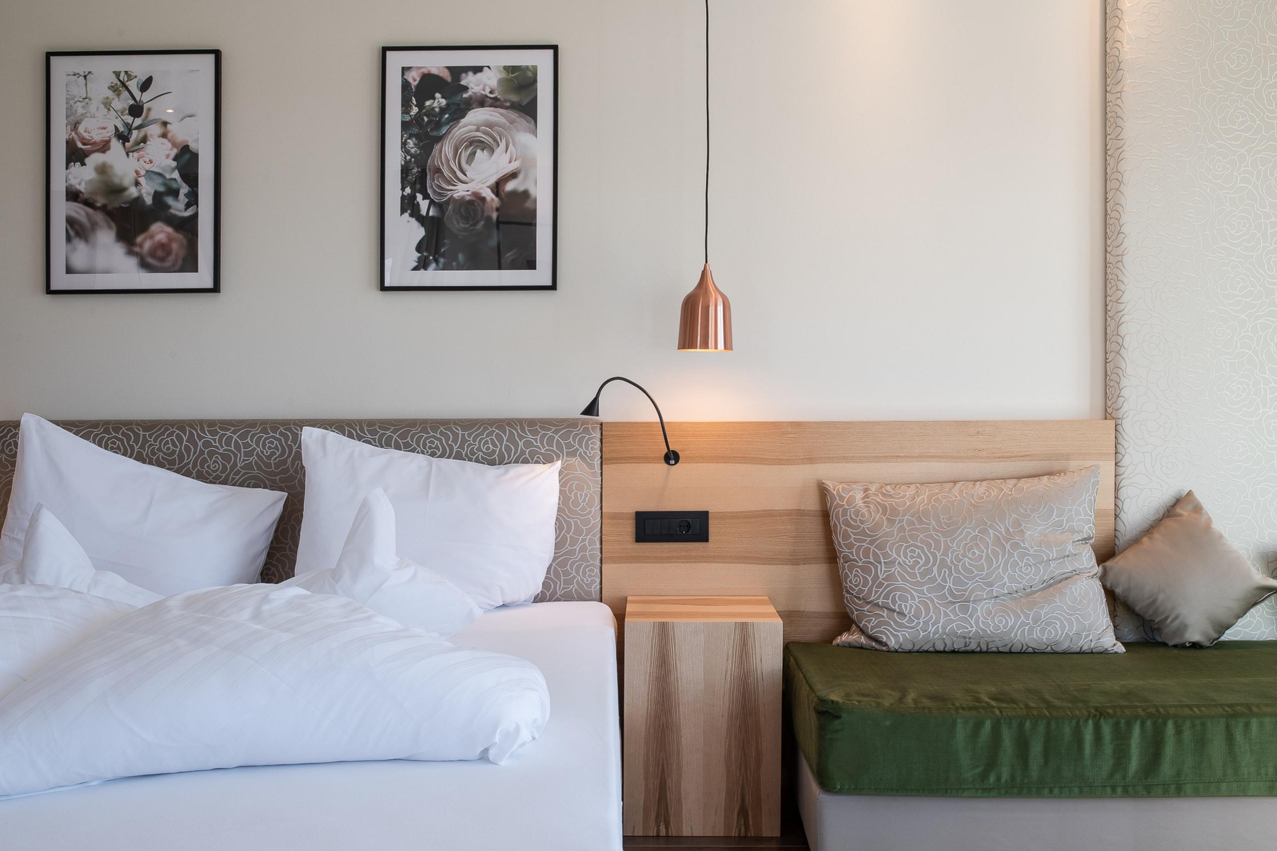 Die Penthouse-Suite ist unser elegantes Unikat: stilvoll reduziert, hell und klar im Design. Das große Boxspringbett verspricht höchsten Schlafkomfort, und das puristische Bad mit Walk-in-Regendusche bietet Platz für Rückzug.